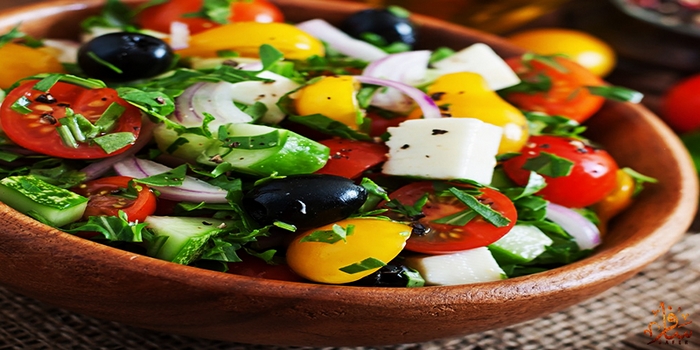 يسمي عالميا بالمطبخ الملون؛ ذلك لكثرة الالون المتواجده فيه حيث الخضروات و الفاكهه المتنوعه، و يسيطر الزيتون بكل منتجاته علي المطبخ اليوناني، بالإضافه إلي الحبوب و الأسماك بكل أنواعها، و الأعشاب و التوابل المتعددة و خاصة الزعتر و الروزماري، من أهم الأكلات المسيطرة علي المطبخ اليوناني السلطات فهي جزء أساسي من السفره اليونانيه، بالإضافة إلي فطائر السبانخ، هورتا فريستا و هو عباره عن مزيج من الخضروات المسلوقة وزيت الزيتون و الثوم و الليمون، فطيره الكاستر، يخنة لحم البقر، و الطماطم المحشوة باللحم و الأرز.